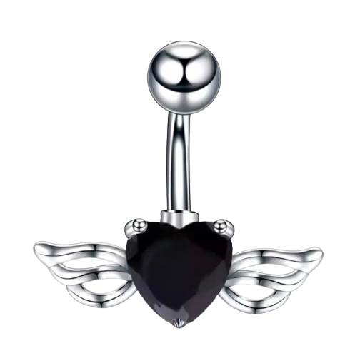 Обеци пъп – черно сърце с криле