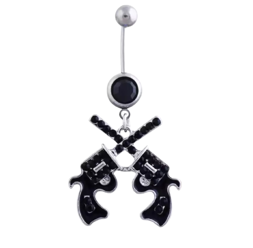 Обеци пъп – черна висулка с пистолети